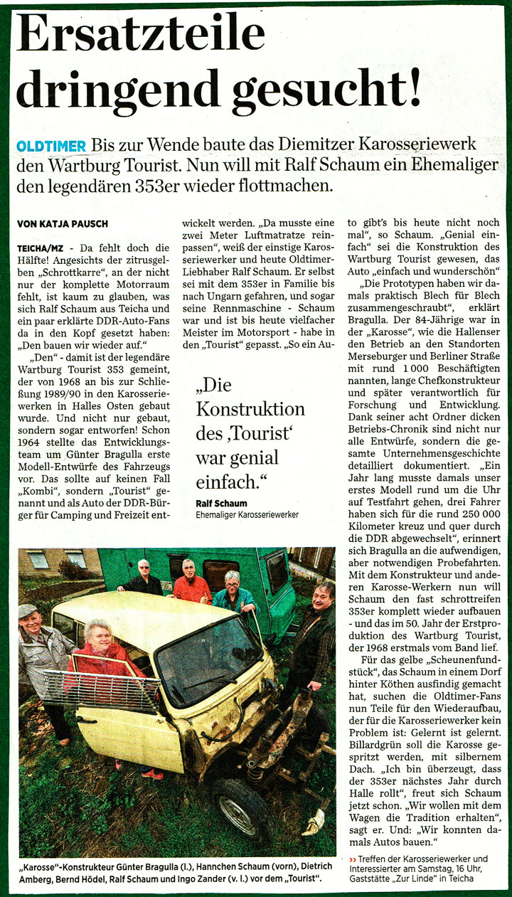 2019/ Mai / Kabelsketal / OT Schwoitsch Die fertig lackierte Karosse und der Motor werden vom Autolackierfachbetrieb Hinz abgeholt.